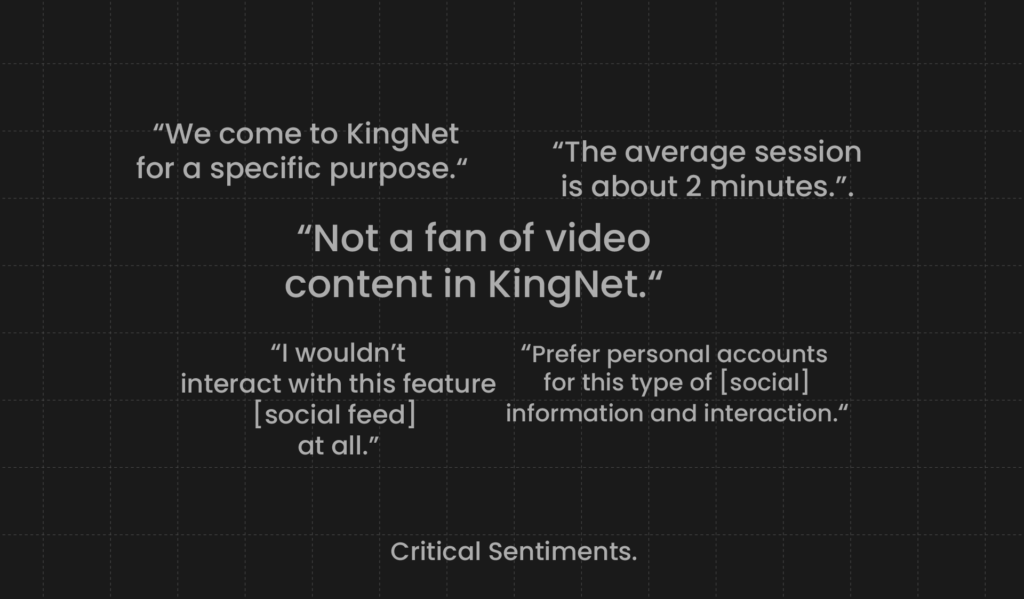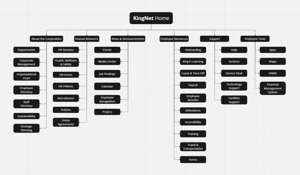 We consulted trusted sources like the Nielsen Norman Group (NN/g) for insights into intranet design best practices. Integrating NN/g’s recommendations alongside other industry findings, we aimed to optimize KingNet’s user experience for improved engagement and usability.