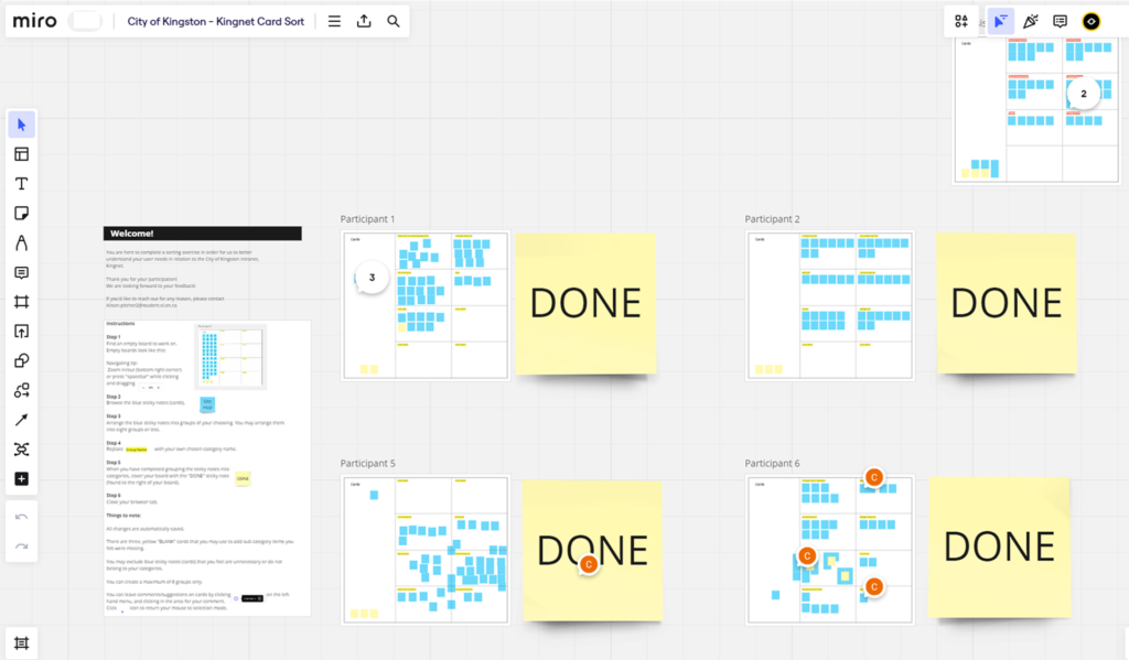 Office workers from the City of Kingston participated in a collaborative card sorting activity. They organized content found within KingNet into groups, providing insights into user preferences and information organization. This exercise informed the development of an –