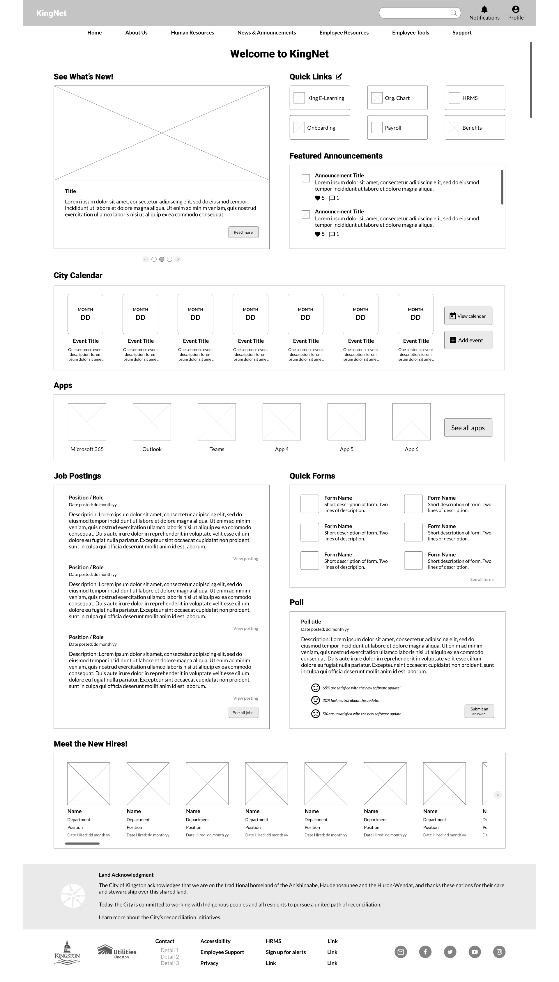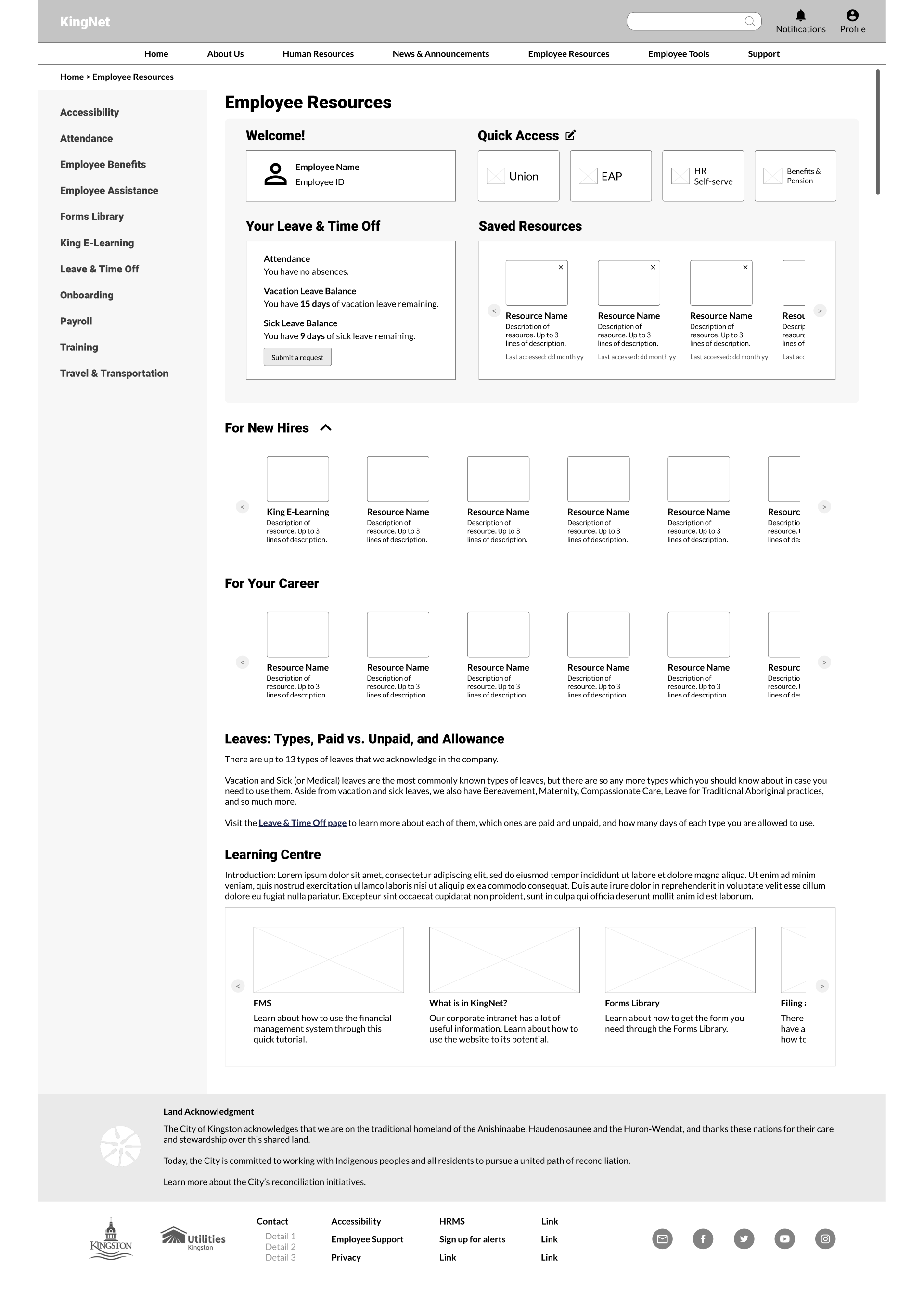 KingNet’s employee Resources Page – wireframe